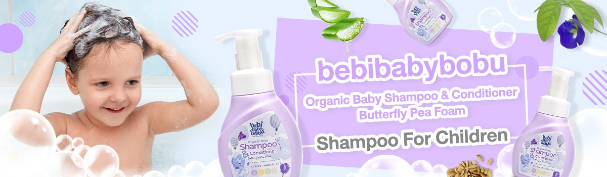 BEBI BABY BOBU Shampooing et revitalisant biologique de qualité supérieure pour bébé Fabriqué en Thaïlande Fournitures de bain en mousse de pois papillon Fournisseur de soins pour bébé